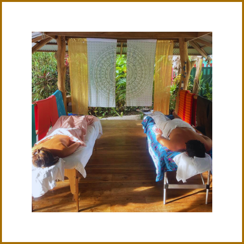 Indulge in a bodywork or massage session of your choice with a partner, friend, or loved one. Experience simultaneous therapy with the soothing sounds of the jungle in the background to enhance relaxation and healing.